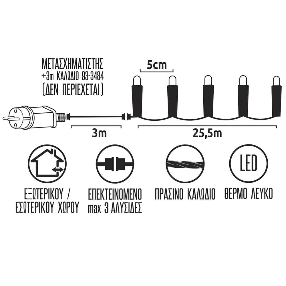 ΛΑΜΠΑΚΙΑ LED 510L ΛΕΥΚΑ ΘΕΡΜΟ ΜΕ ΠΡΟΓΡΑΜΜΑ 25,5m ΕΞΩΤΕΡΙΚΟΥ ΧΩΡΟΥ (Δεν περιέχεται ο μετασχηματιστής)