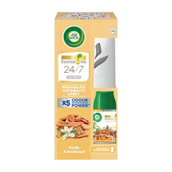 AIRWICK FRESHMATIC MAX ΣΥΣΚΕΥΗ ΜΕ ΑΥΤΟΜΑΤΟ ΣΠΡΕΙ 250ml ΒΑΝΙΛΙΑ & ΣΑΝΔΑΛΟΞΥΛΟ