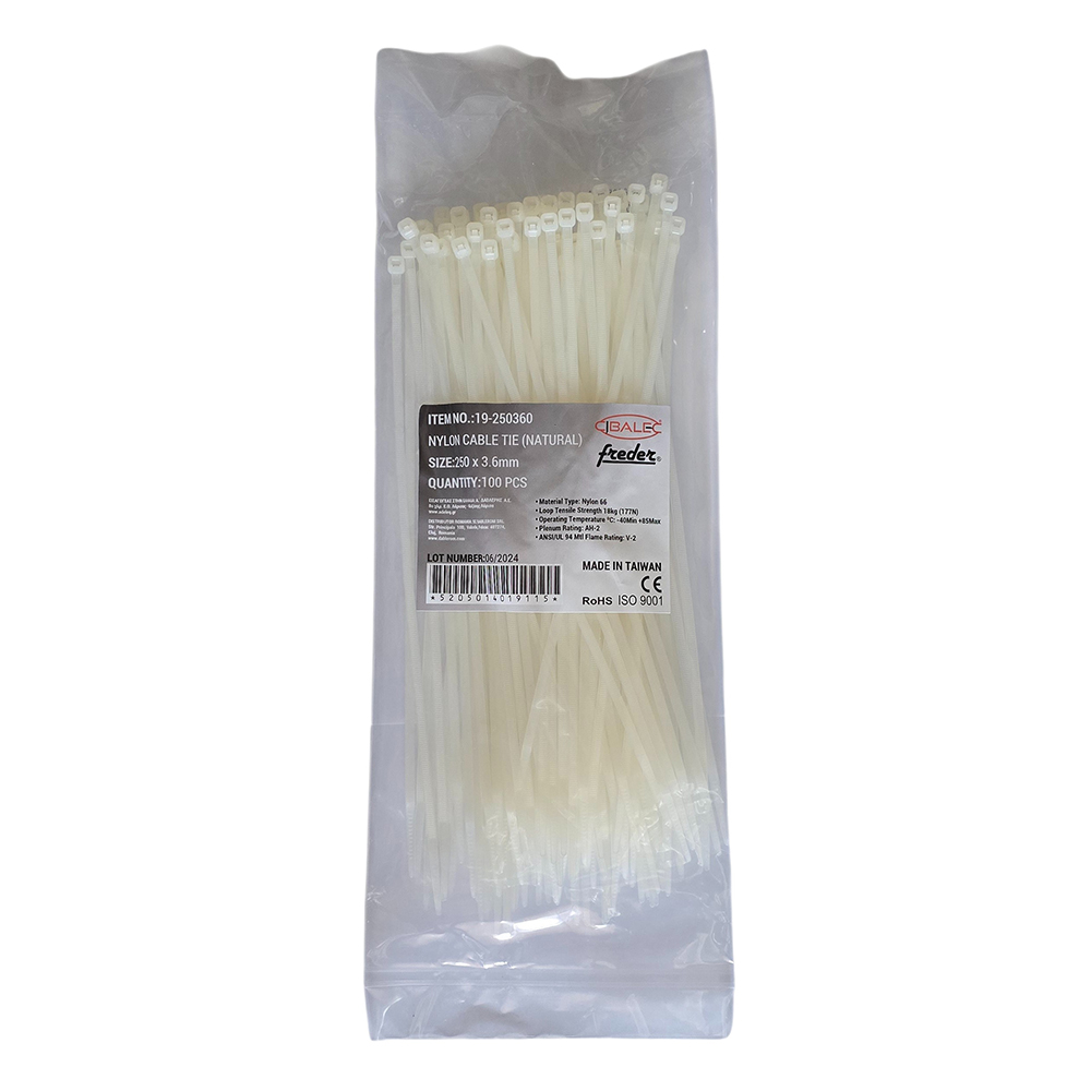ΔΕΜΑΤΙΚΑ ΚΑΛΩΔΙΩΝ 25εκ. X 3.6mm 100τεμ. ΛΕΥΚΑ 19-250360