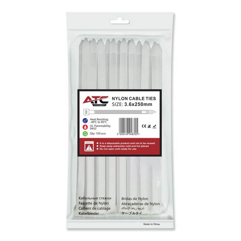 ΔΕΜΑΤΙΚΑ ΚΑΛΩΔΙΩΝ 25εκ. Χ 3.6mm 100τεμ. ΝΑΙΛΟΝ ΛΕΥΚΑ