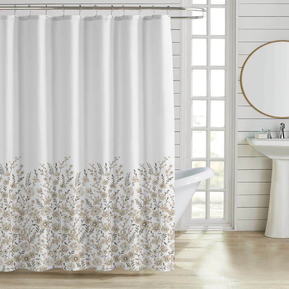 ΚΟΥΡΤΙΝΑ ΜΠΑΝΙΟΥ ΠΟΛΥΕΣΤΕΡΙΚΗ 180Χ180εκ. 90gsm ΜΕ 12 ΚΡΙΚΟΥΣ ΛΟΥΛΟΥΔΑΤΟ ΣΧΕΔΙΟ ΣΕ ΓΗΙΝΟΥΣ ΤΟΝΟΥΣ 846368
